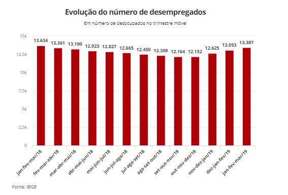 No trimestre encerrado em fevereiro, a taxa de desemprego verificada pelo IBGE foi de 12,4%, atingindo 13,1 milhões de brasileiros.