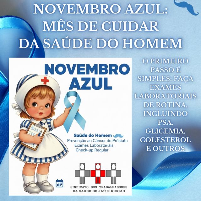 O Sindicato dos Trabalhadores da Saúde de Jaú e Região também entrou nessa campanha. A entidade decorou sua sala de reuniões com a temática do Novembro Azul para lembrar aos associados — e também aos maridos e pais das associadas — que este é o momento de cuidar deles. A ação busca motivar os homens a deixarem de lado a resistência comum em procurar atendimento médico e a realizarem seus exames preventivos.