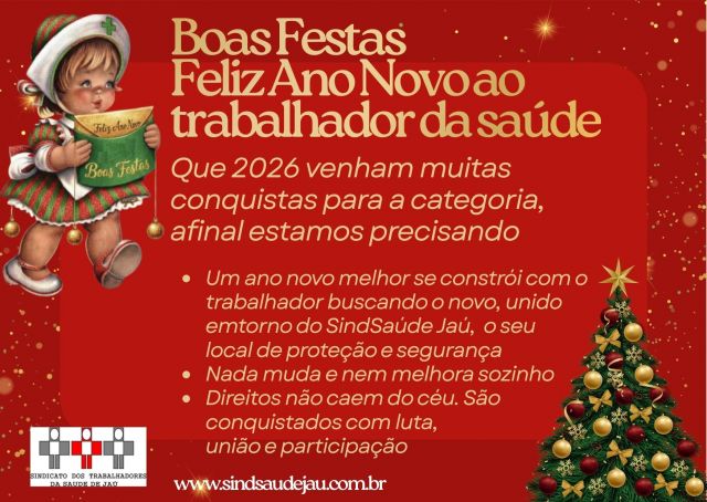 Neste período de festas, o SindSaúde Jaú deseja a todos os trabalhadores e trabalhadoras da saúde de Jaú e região votos de paz, saúde e renovação. Mas também aproveita este momento para fazer um chamado à consciência coletiva da categoria.