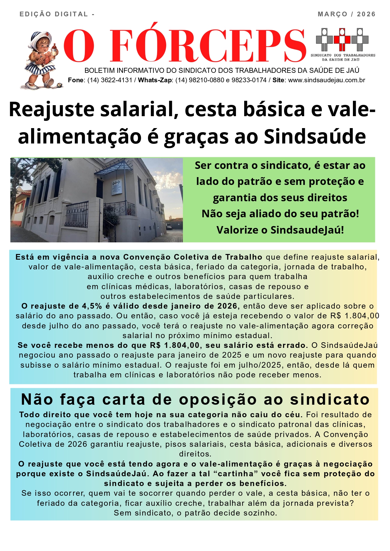 Seu reajuste salarial, cesta básica e vale-alimentação é graças ao SindsaúdeJaú