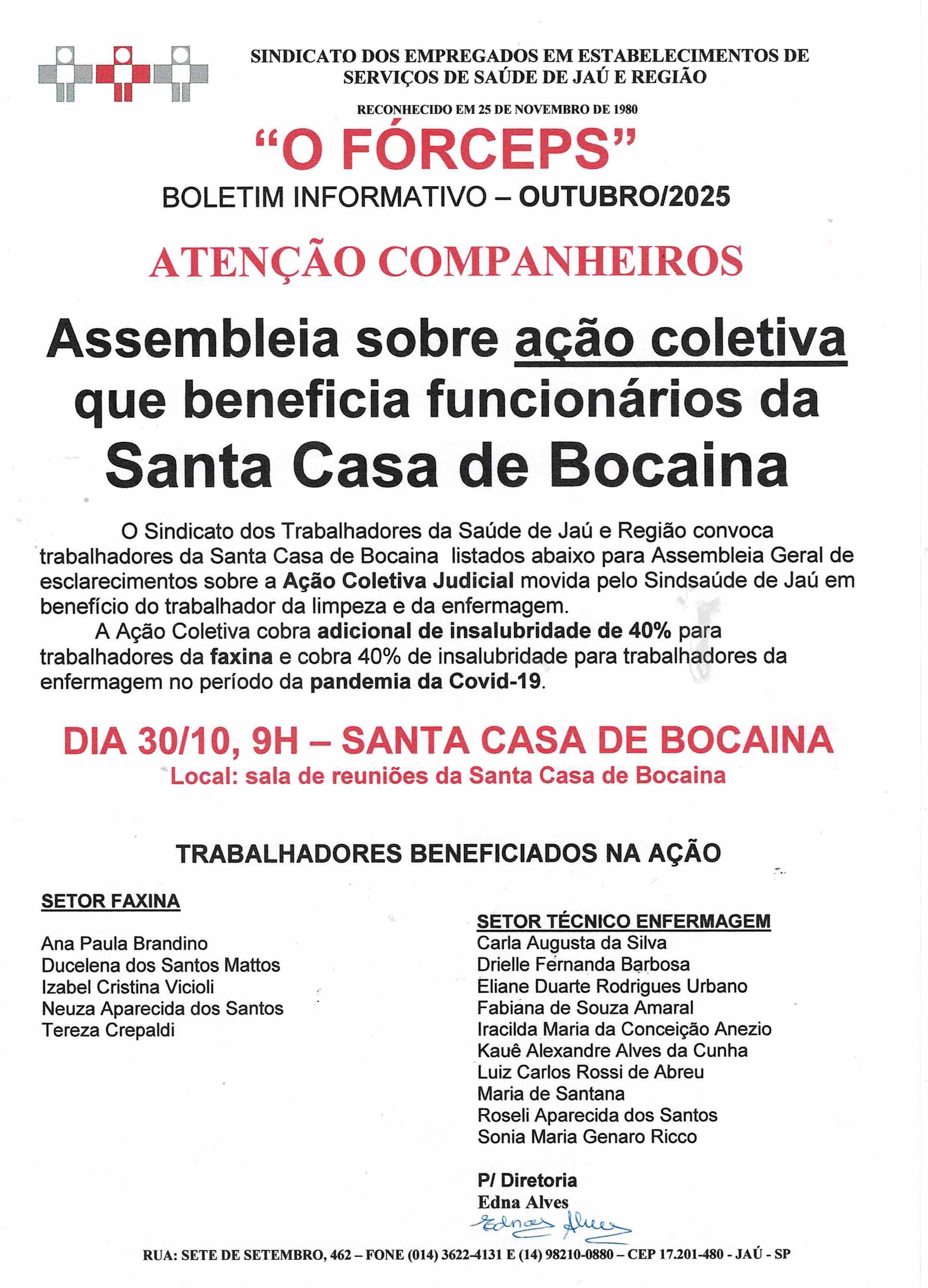 Fone (14) 3622-4131 - E-mail: sindsaudejau@uol.com.br