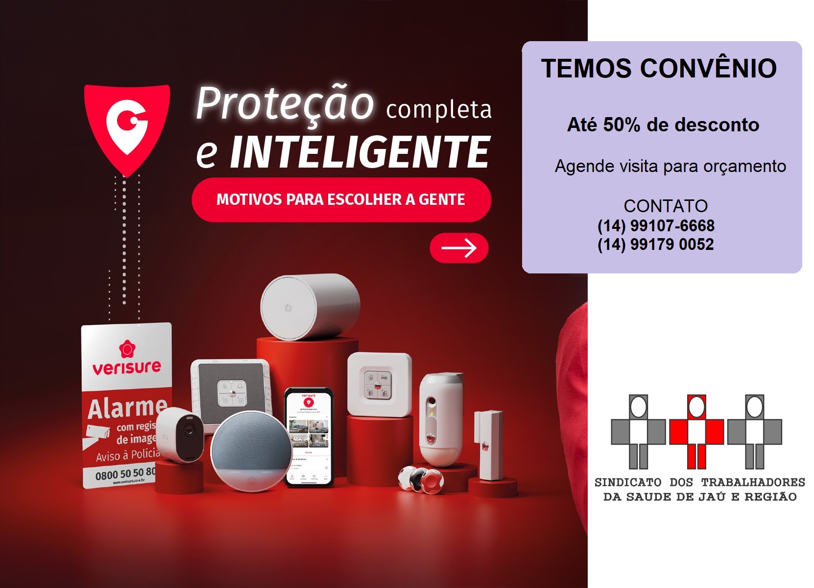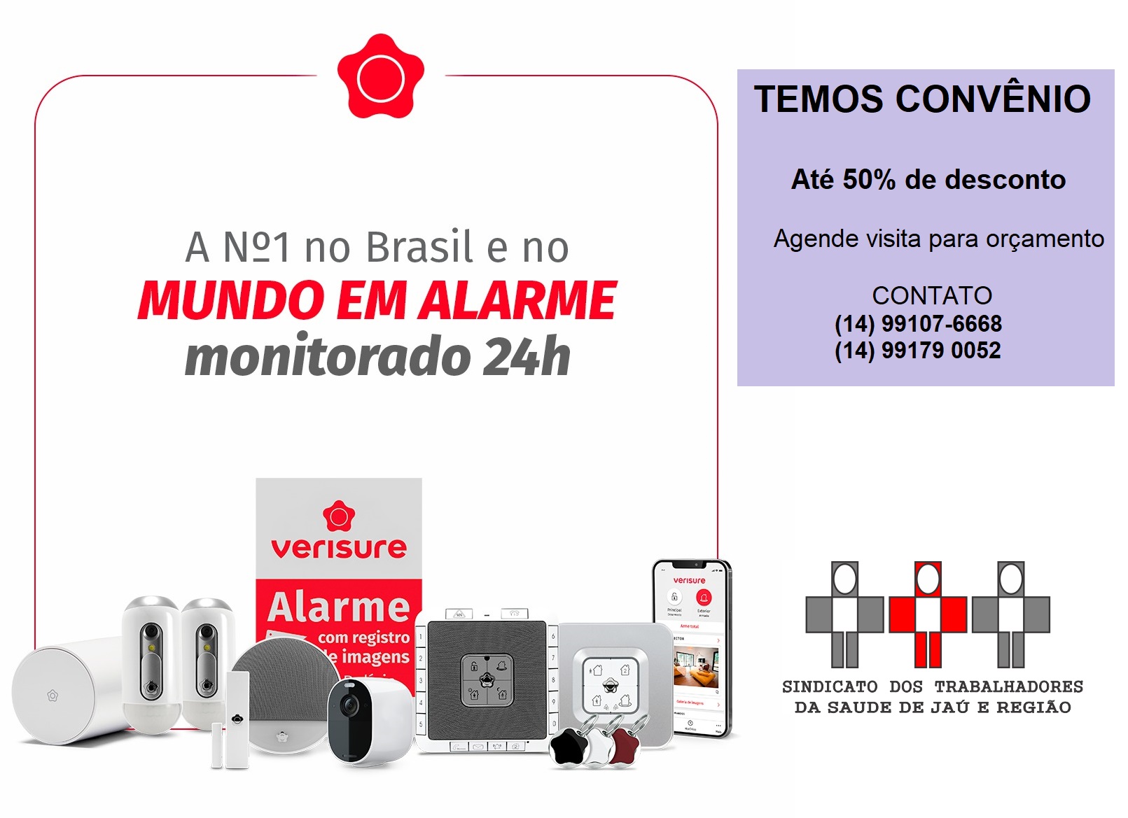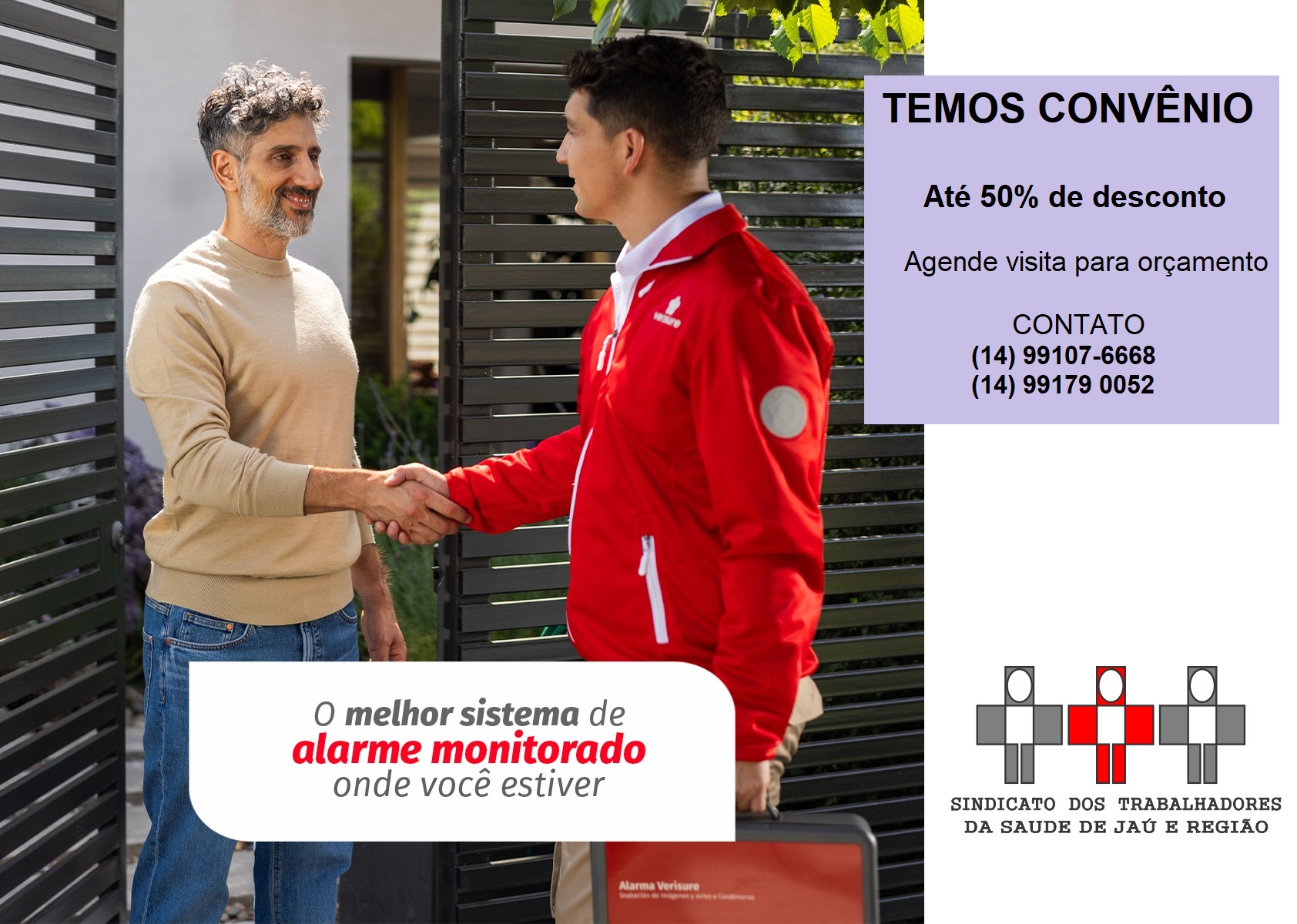 O Sindicato dos Trabalhadores da Saúde de Jaú e Região (SINDSAUDEJAU) acaba de firmar mais uma parceria para seus associados. Desta vez, com a Verisure, empresa especializada em sistemas de alarmes monitorados 24h, presente em mais de 16 paÃses e com mais de 5 milhões de clientes.